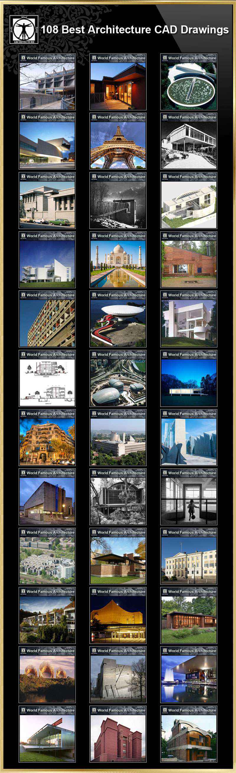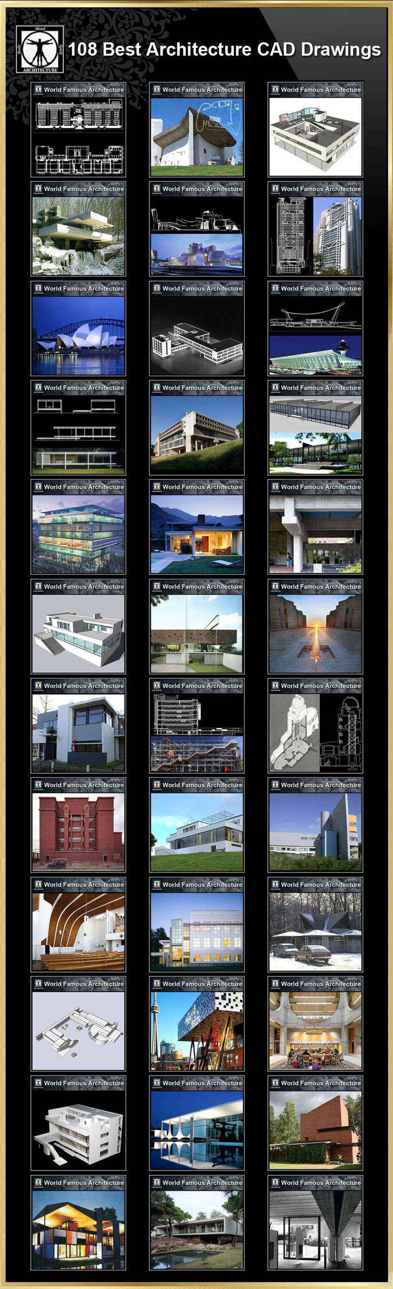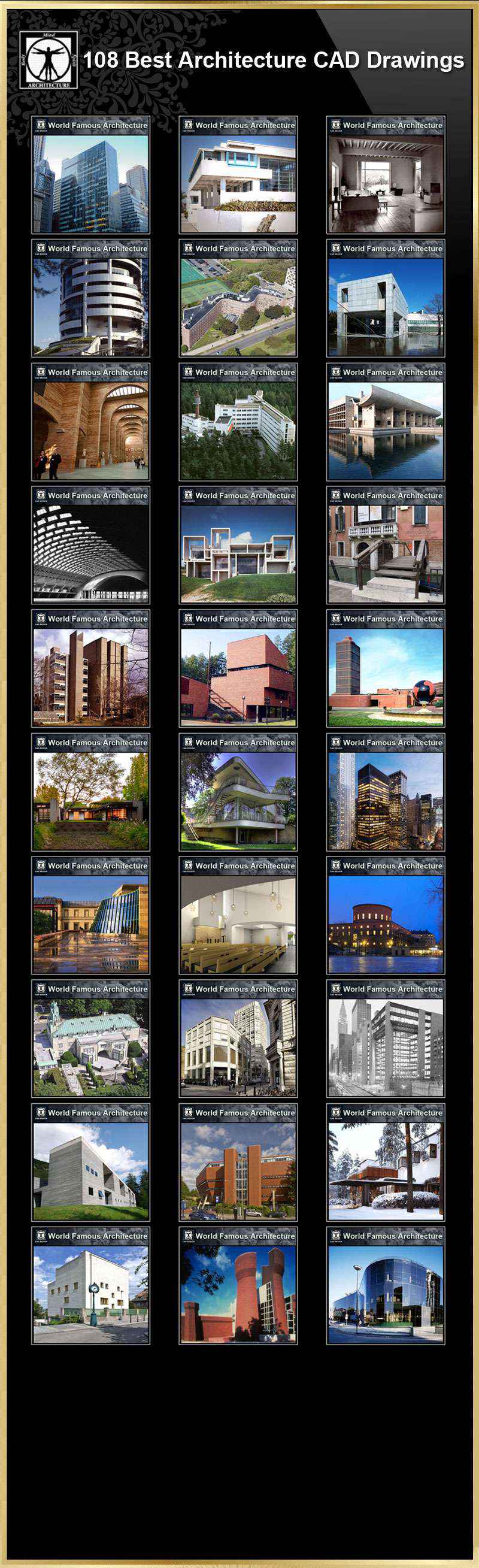 Total 108 World Best Architecture CAD drawings are available to purchase and download !!