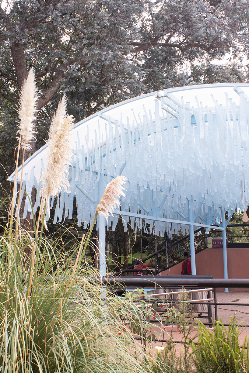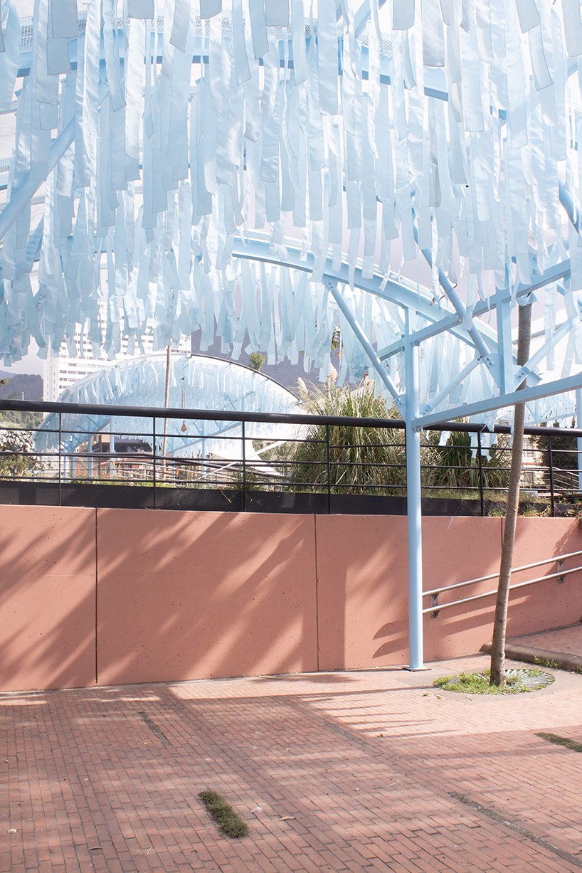 The post blue fabric fragments dance with the wind on modular cultural pavilion in colombia appeared first on designboom | architecture & design magazine.