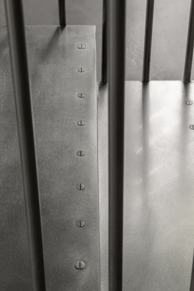 metals define the material language, with stainless steel plates, hot-dip galvanized finishes, and metal mesh
