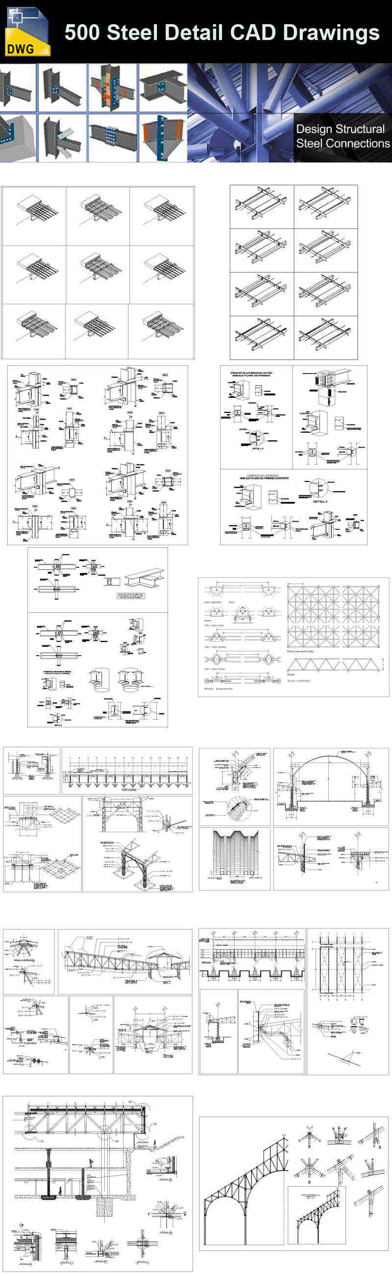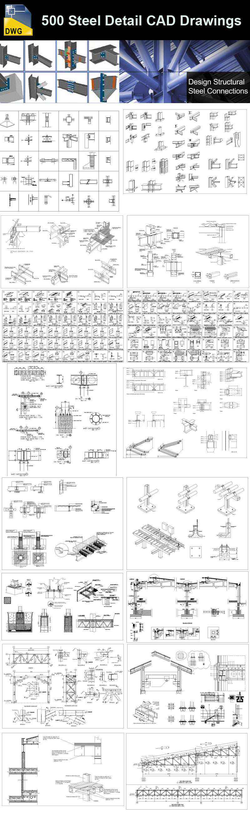 Over 500+ various type of Steel Structure Details CAD Drawings