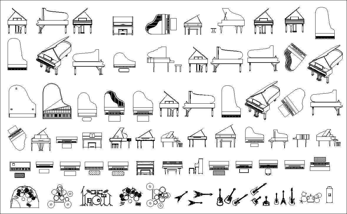 ★【Various types of musical instruments Autocad Blocks】All kinds of musical instruments CAD blocks Bundle