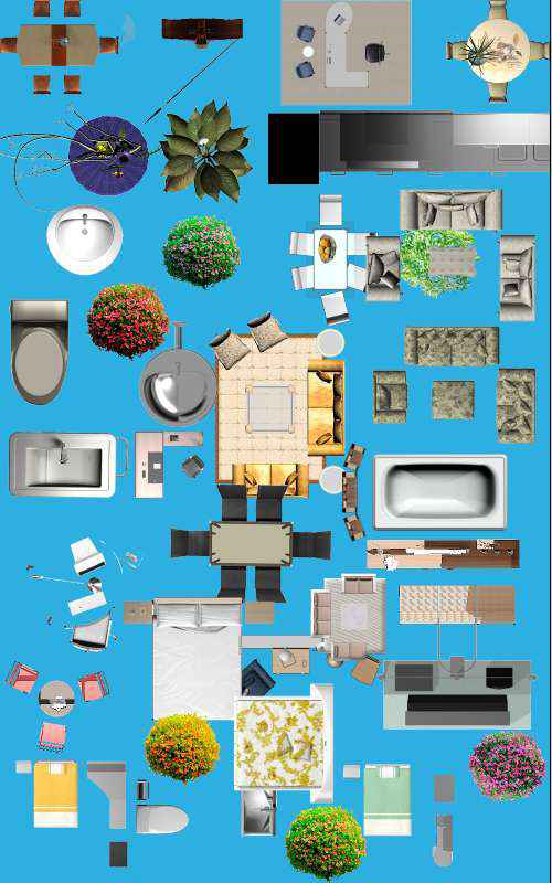 Photoshop “PSD” blocks can be used in architectural plans rendering, interior design and landscape design.