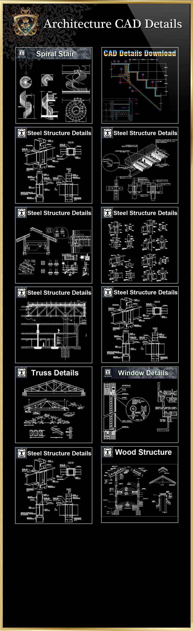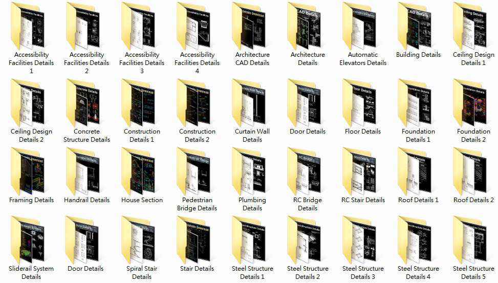 Included All the followings 40 CAD Details collection: