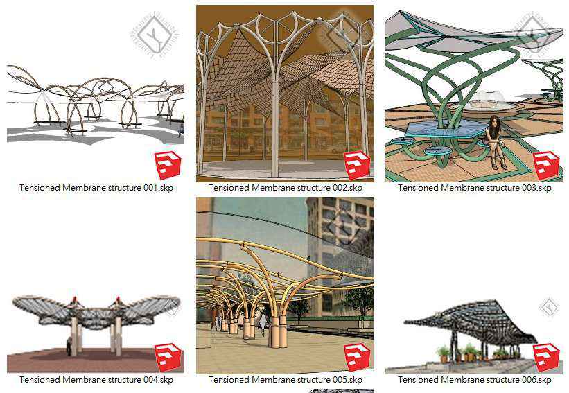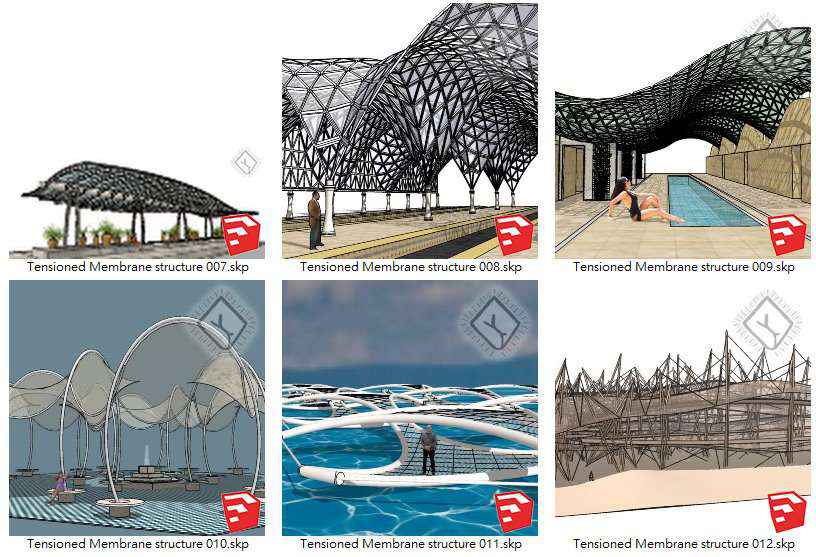 【Sketchup 3D Models】19 Types of Tensioned Membrane Structure Sketchup Models V.1