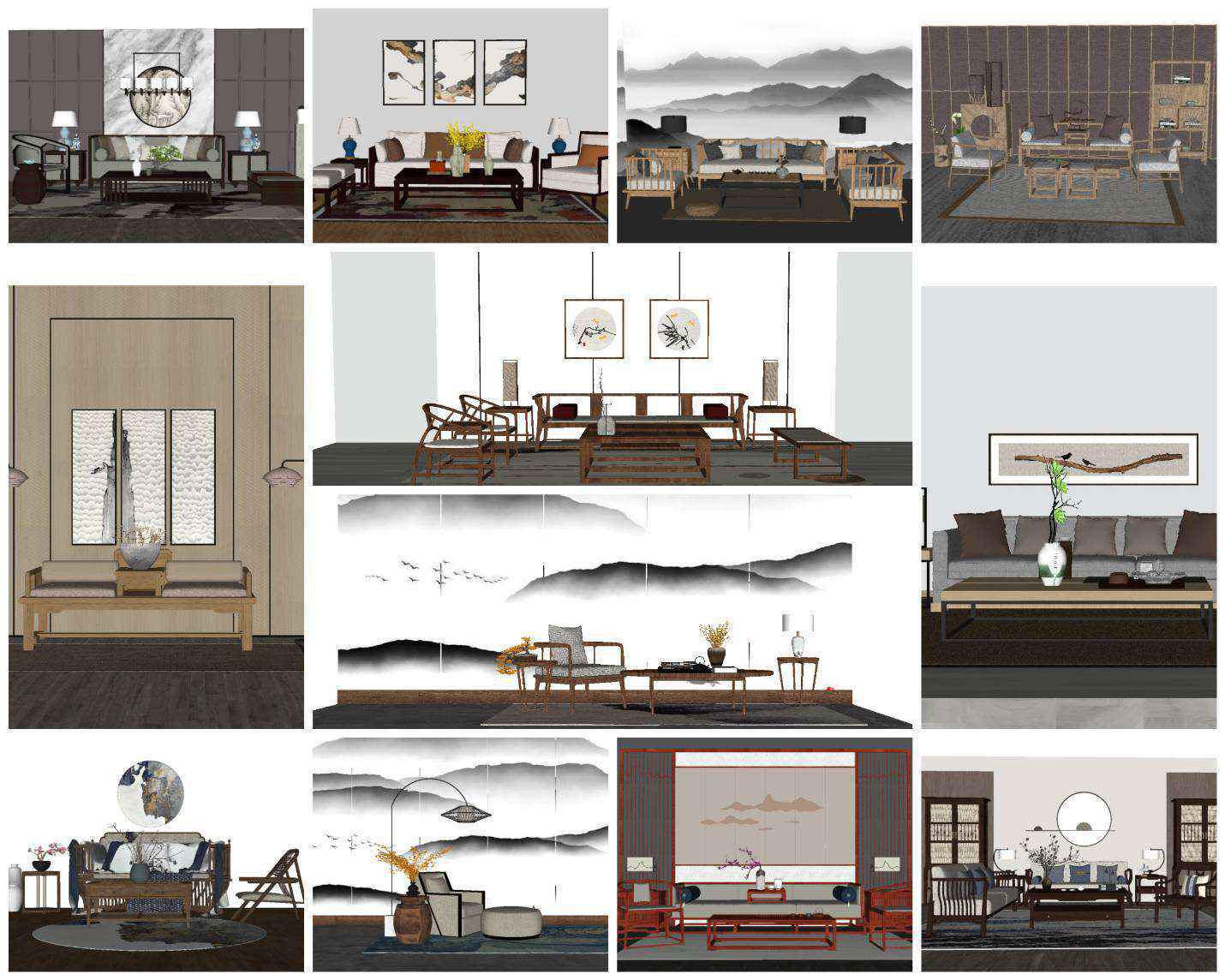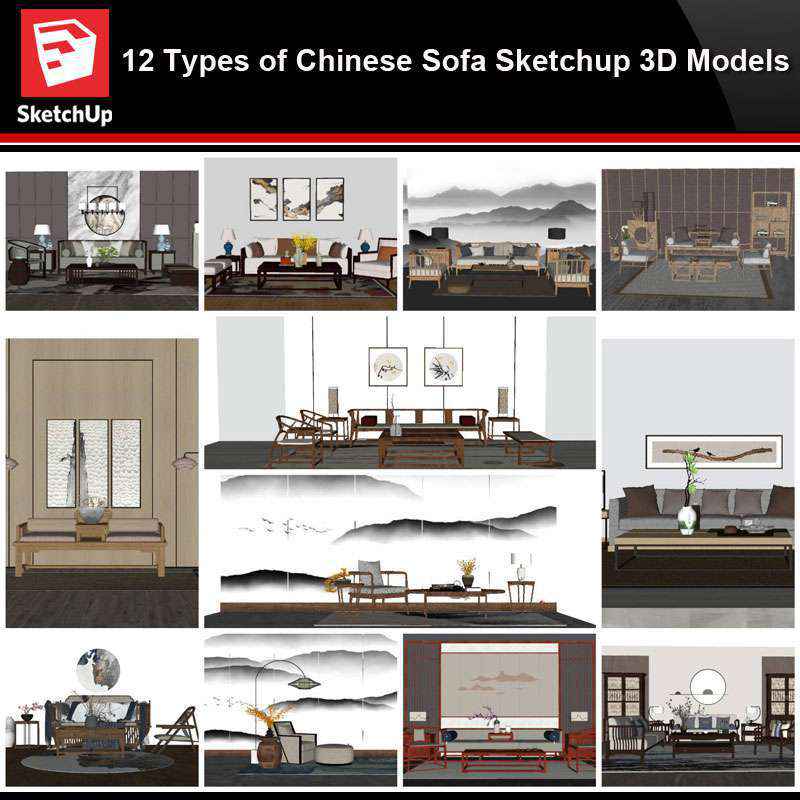 💎【Sketchup Architecture 3D Projects】12 Types of Chinese sofa Sketchup 3D Models