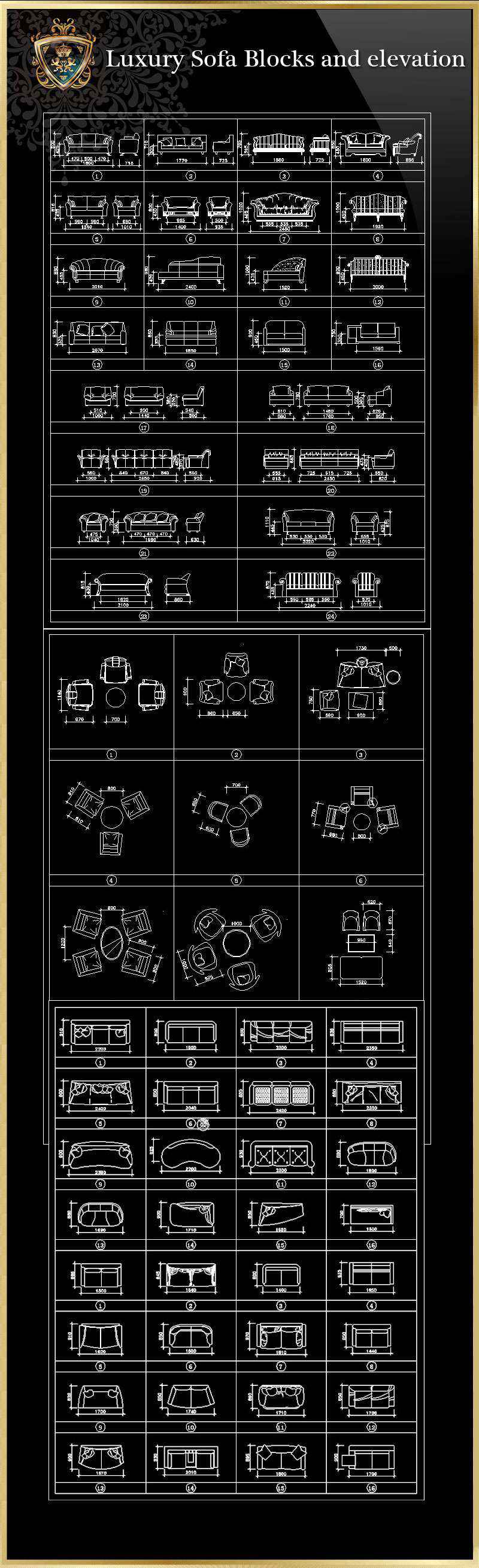 Sofa Blocks and elevation(All in one!!)