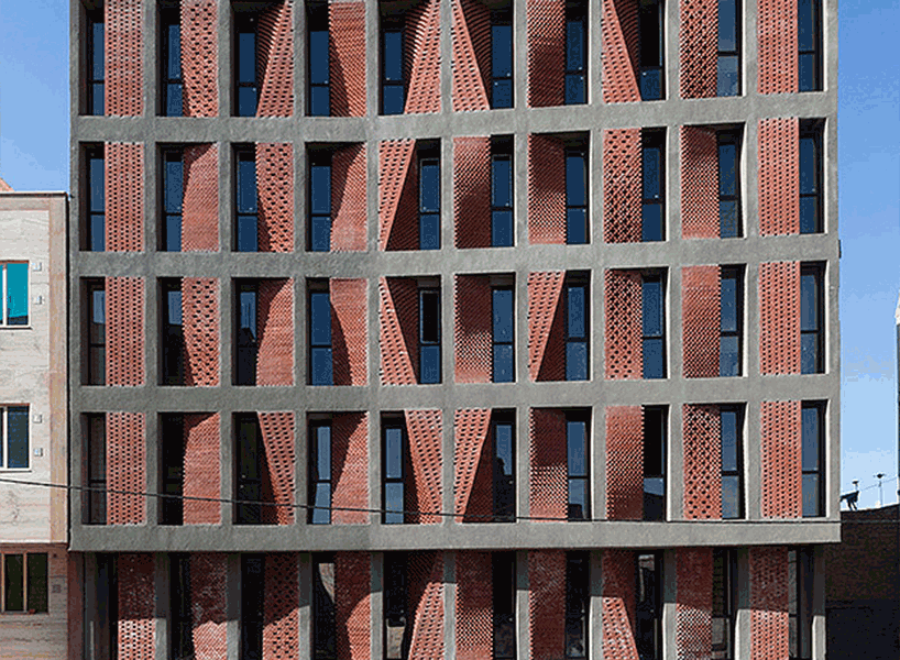 An aluminum metal shell underscores the structure’s sculptural quality and stresses the correlation between the two “building blocks” – the Inselhalle and the parking garage.